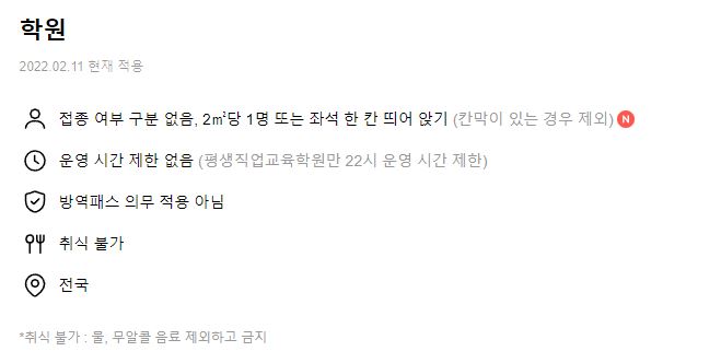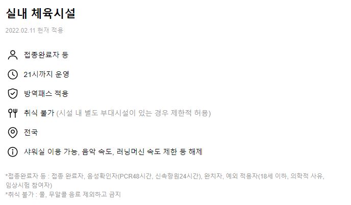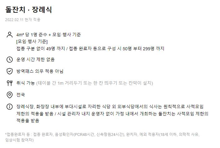 2022년 2월 11일 기준으로 현재 방역수칙은 다음과 같습니다.