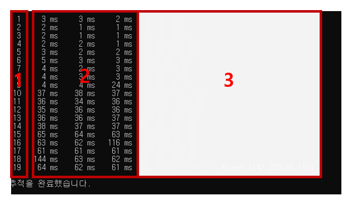 1. 내 컴퓨터에서 목적지 주소까지 거치는 곳의 호스트 숫자